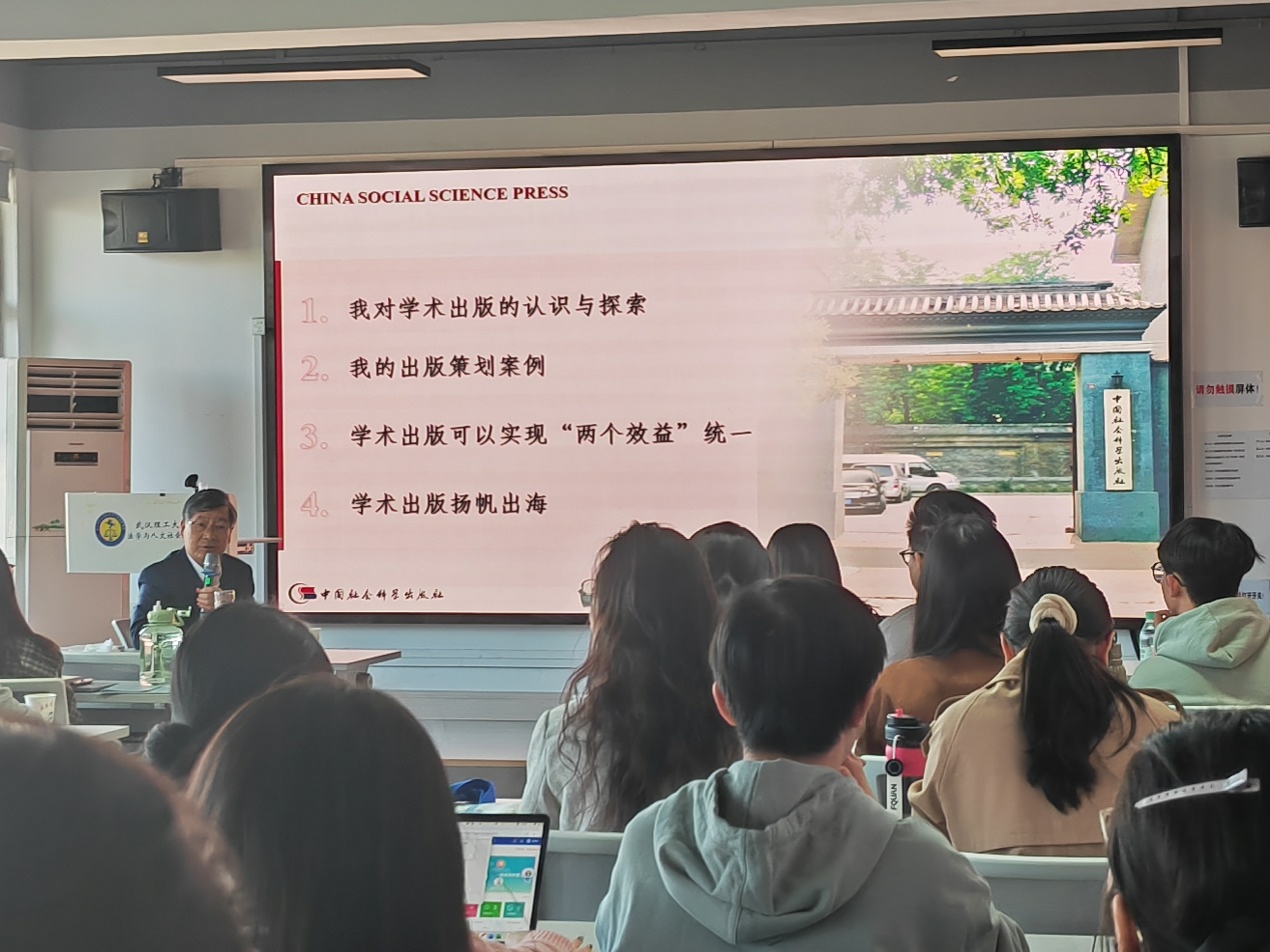 2025年10月23日,中国社会科学院博士生导师赵剑英教授在成人电影 弘毅楼附915会议室,为我院师生带来以“出版的策划传播与学术发展”为主题的讲座。新闻传播系占莉娟主任主持,张弛,唐伶俐、李娜、朱晓婉、刘叶萍、周璟等老师以及硕士研究生参与学习交流。