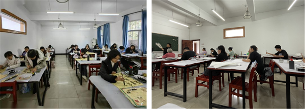 参与同学在专业老师的带领下,从握笔、调墨、用水等基础技法学起,再逐步深入接触花鸟、山水、梅兰竹菊等国画经典题材。授课过程中,老师不仅细致讲解国画的历史与美学内涵,还结合具体题材现场示范运笔力度、线条走向与构图布局方法,帮助同学们在理论与实践的结合中体会国画的独特韵味。