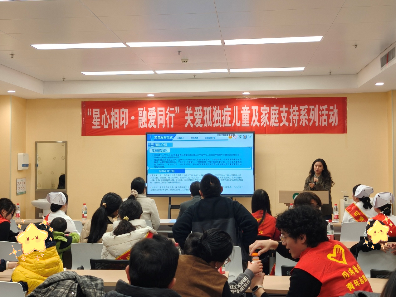 为深入践行雷锋精神,切实回应孤独症儿童及其家庭的现实需求,2026年3月7日,我院“心心语”志愿服务队联合武汉同济医院光谷院区团委与儿童保健科,成功举办“星心相印·融爱同行”雷锋日主题活动。在本次活动中,“心心语”志愿服务队致力于将志愿服务与专业医疗支持深度结合,不仅为孤独症家庭送去了切实的关怀,也正式启动了与同济医院合作的常态化孤独症家庭赋能项目,为我校助残志愿服务事业开拓了全新实践路径。