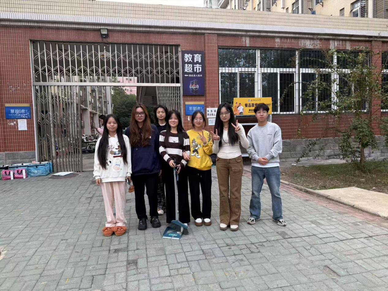 活动现场,同学们热情高涨、分工协作,手持扫帚、簸箕等工具,对慧园宿舍区的公共道路、楼栋门口等区域进行了全面清扫。大家不放过任何卫生死角,仔细清理落叶、杂物与垃圾,用双手为同学们营造整洁、舒适的居住环境。从工具准备到实操清扫,从细节整理到成果维护,每一个环节都彰显着青年学子不怕脏、不怕累的劳动精神,也让同学们在亲身实践中深刻体会到劳动的艰辛与收获的喜悦。