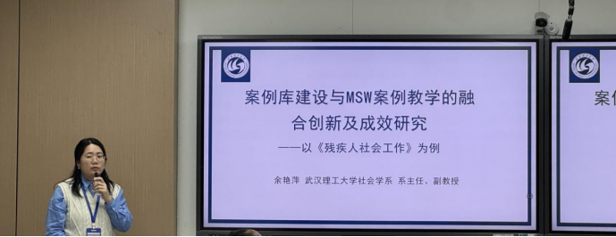 在“社会工作专业硕士教育产教融合与政产学研协同育人”分论坛中,余艳萍副教授以“案例库建设与MSW案例教学的融合创新及成效研究——以《残疾人社会工作》课程为例”为题进行分享。她介绍了一种以案例库建设与案例教学深度融合为核心的教学创新模式,强调将案例建设过程融入教学环节,推动学生从被动学习案例转变为主动参与共建案例,实现“做中学”。该模式通过课前共建、课中研讨与课后反思,重构“案例库驱动”的教学流程,形成“建”与“教”的良性互动,有效促进教学与实践的衔接,为MSW教育的内涵式发展提供了可行路径。