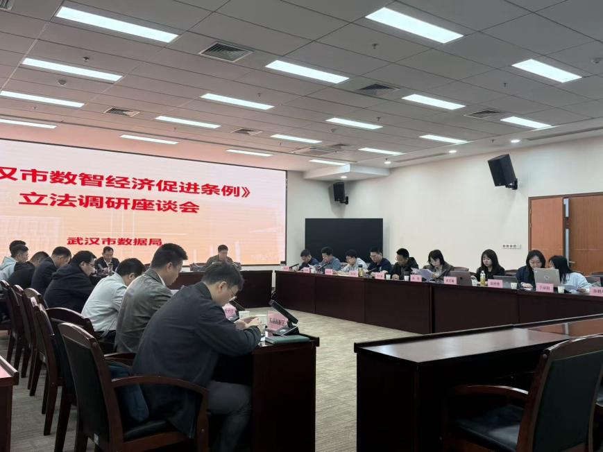 按照武汉市市人大常委会2026年立法工作安排,为做好《武汉市数智经济促进条例》立法前期研究,全面掌握武汉市数智经济发展现状、制度需求与实践基础,推进科学、民主立法,4月8日,在武汉市数据局召开了《武汉市数智经济促进条例》立法调研座谈会。我院刘介明院长团队受邀参加了立法调研座谈会,并与武汉市数据局政策和规划处、数字经济发展处、市信息中心研究发展部领导以及各区数据局负责人进行了深入交流。学院教师孟奇勋、薛志华、梁本部、高珺、刘小威、彭艺璇、赵婷微、于洁阳等参与了本次座谈交流。