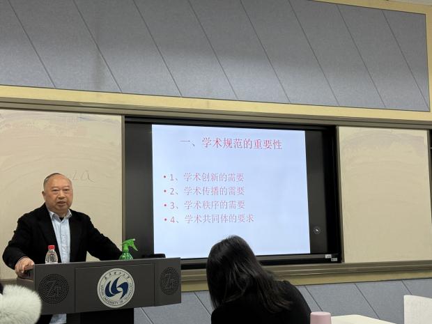 一是在“学术规范”部分,他从学术创新、学术传承、学术秩序和学术共同体等角度,阐释了恪守学术规范的必要性。邹教授强调,规范不是束缚,而是保证创新得以被学界认可的前提。没有严谨的引文、注释和文献综述,就谈不上真正的学术成果;他特别强调了创新在学术论文写作中的重要性,并指出青年学者要在日常阅读、写作和交流中自觉养成规范意识。